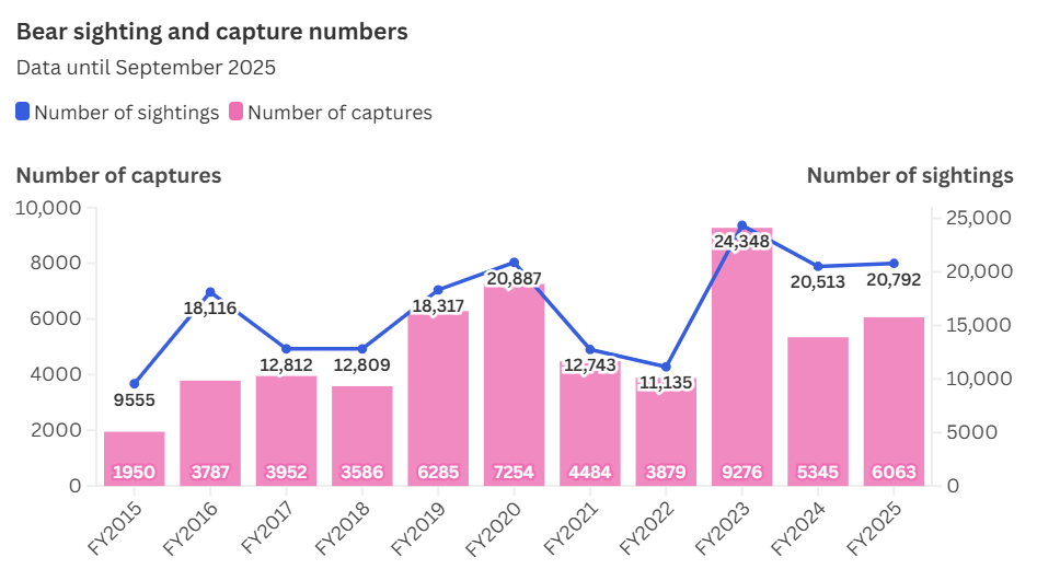 Bear sightings graph by JapanNews https://japannews.yomiuri.co.jp/society/general-news/20251102-290472/