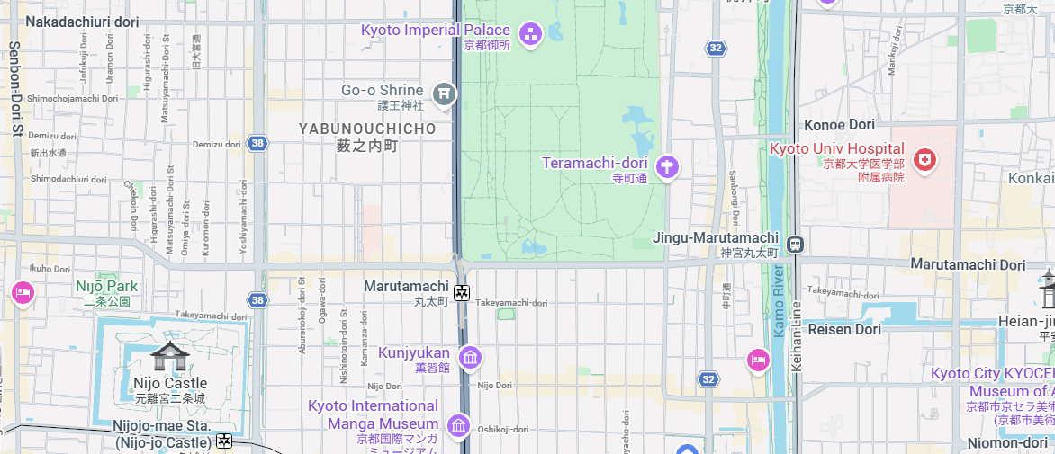 - Peaceful, leafy residential streets near the iconic Kyoto Imperial Palace and Nijo Castle